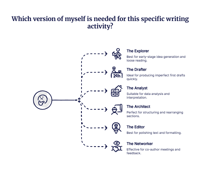 - Explorer, Drafter, Analyst, Architect, Editor, Networker (or your own labels).